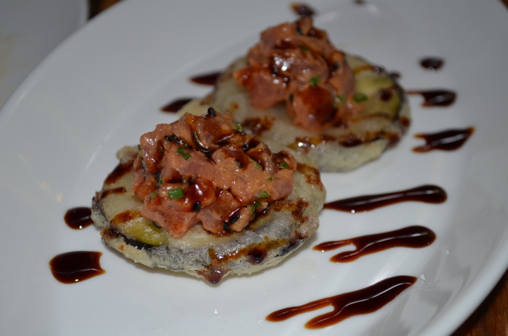 spicy, bigeye tuna, tempura japanese eggplant, kecap manis: