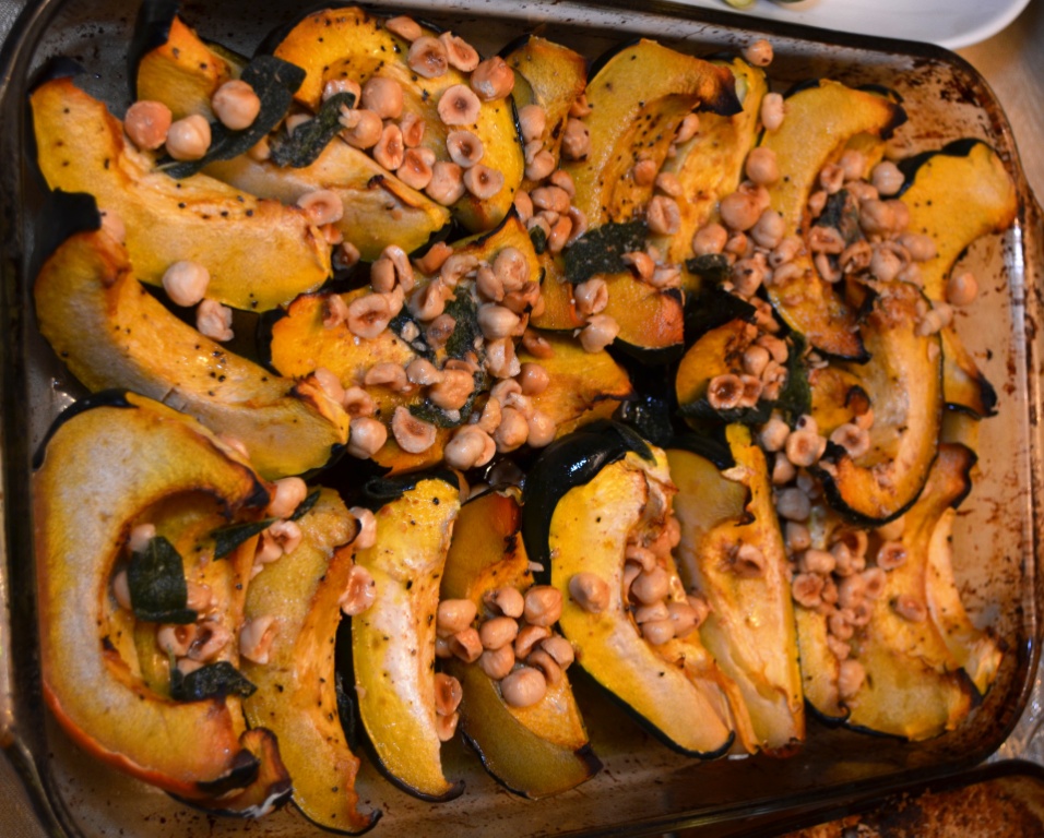And then hazelnut-sage butter (stick of butter, cup of chopped hazelnuts and about a cup of whole sage leaves):