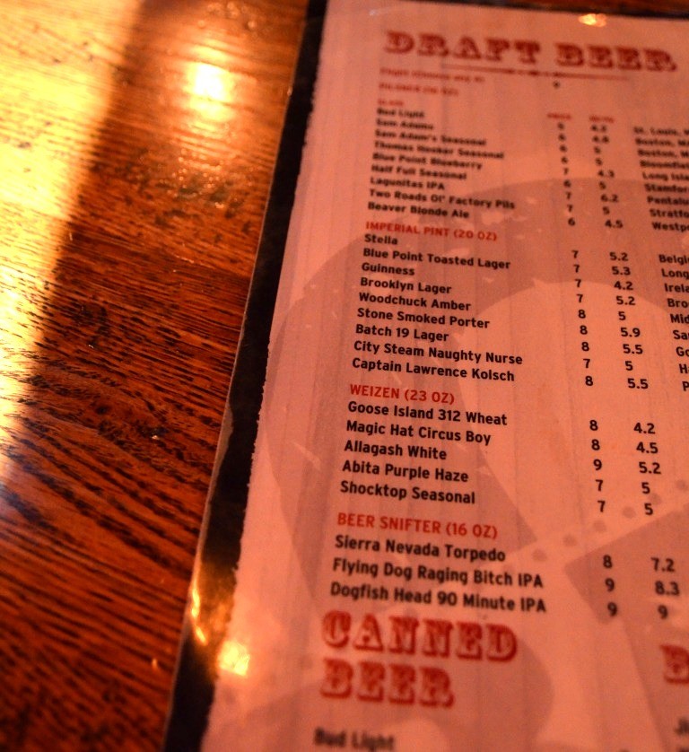 Our flight included Allagash White, Belgian style wheat ale – perfectly refreshing, Goose Island 312 Urban Wheat – had a bit more weight compare to Allagash, still quite refreshing, Woodchuck Amber Draft Cider – very dangerous to have in the presence of kids, as in appearance it is not any different than Ginger Ale – light, fizzy taste with some sweet notes – perfectly quaffable. The last beer was Blue Point Toasted Lager, which is in the category of so called Red Lager – it had some bitter notes, medium weight on the palate – quite enjoyable as well.