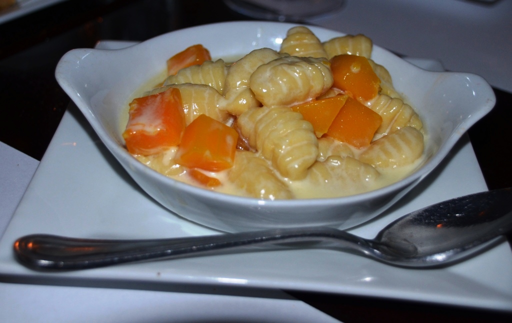 Potato Gnocchi, Butternut Squash, Cream Sauce – not only it was a butternut squash sauce, but butternut squash was perfectly present in the dish. Lightly sweet and delicious together.