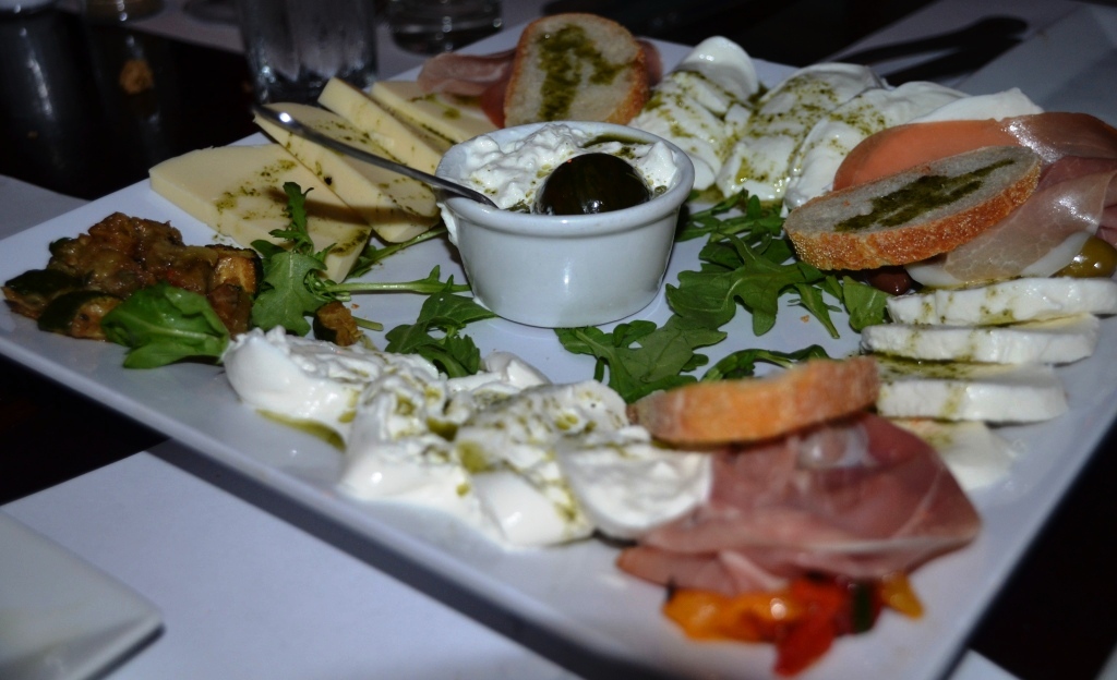 Almost as an afterthought, but at the same time very apropos, we ordered a cheese sampler platter right after we were done with the most of the meal. The Cheese Sampler included Buffala Mozarella, Burrata, Stracciatella and Scamorza. Burrata is one of my all time favorite Italian cheeses, and then there was creamy and spreadable Stracciatella – wow, the word “delicious” does only half justice to the way this cheese tastes.
