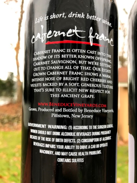 > Parent, Secret Power, Unsung Hero > Beneduce Vineyards Cabernet Franc back label