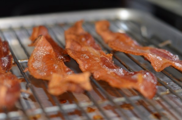 This is Valentine’s Day dinner, so we need to up the game, right? What can elevate breakfast better than some crispy bacon? Yep, bacon it is!