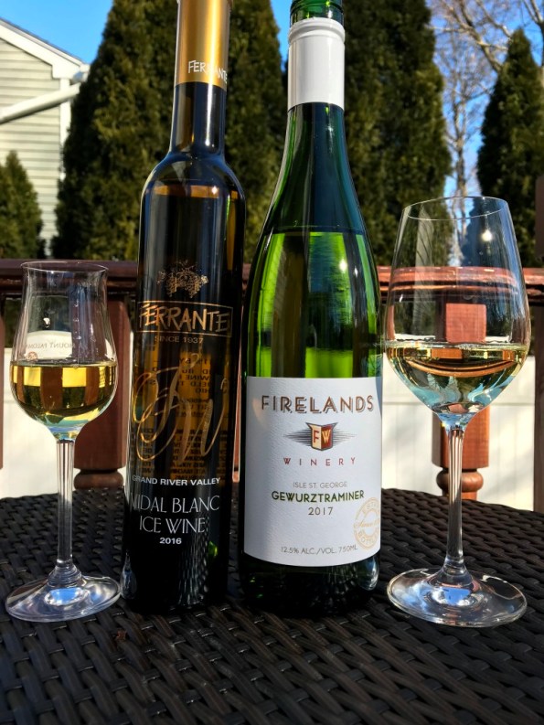 When I opened the box with the wines for the tasting, my first reaction was “ohh, this might not end well”. First one was Firelands Gewurztraminer – and I consider Gewurztraminer a very difficult grape – it is really difficult to create a balanced Gewurztraminer wine – I had lots (did I say lots?) of undrinkable editions, so yes, that bottle made me concerned. The second wine was equally concerning – Vidal Blanc Ice Wine from Ferrante winery. Again – an experience with many plonk-level Ice wines was definitely getting in the way.