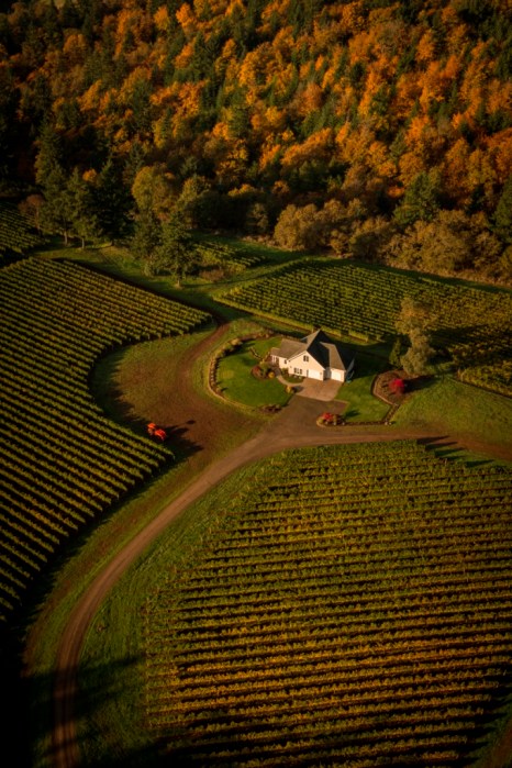 Aerial view over Le Cadeau Vineyard, Chehalem Mountain AVA, Willamette Valley, Oregon. Source: Le Cadeau Vineyard