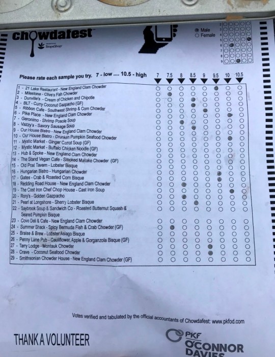 > For The Love Of Chowder – 2019 Edition > Chowdafest 2019 filled ballot