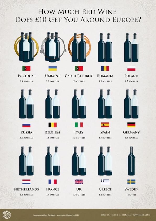 As controlling spending during lockdown is also essential, House of Townend came up with interesting infographics, showing how much wine £10 can buy: