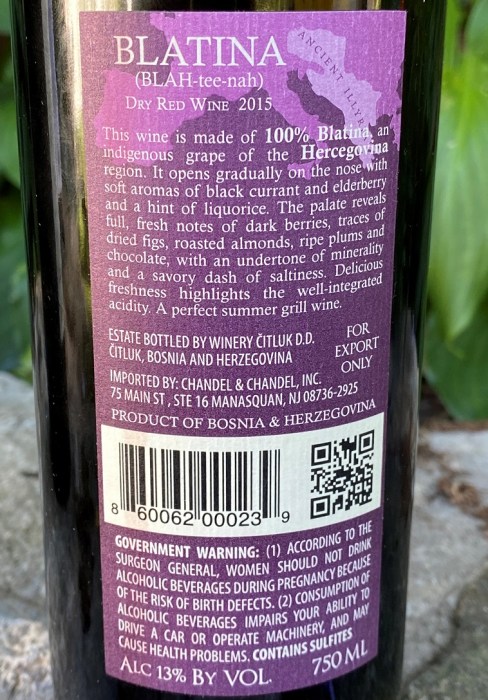 > Drinking With Purpose > Blatina Back label
