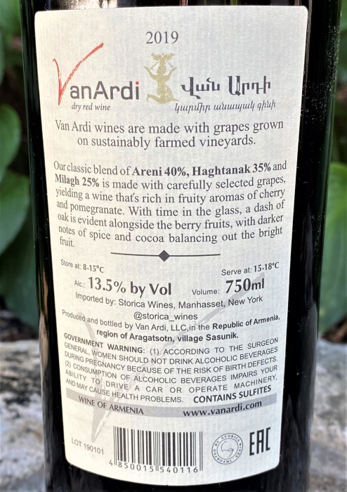 > Drinking With Purpose > VinArdi Red Armenia Back label