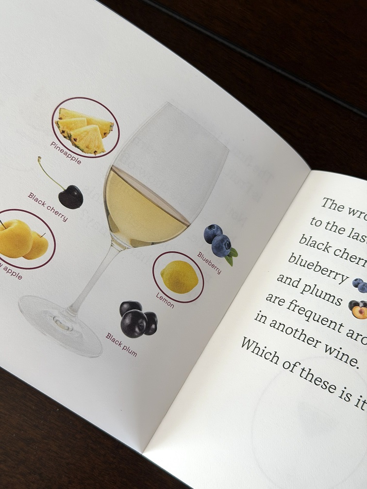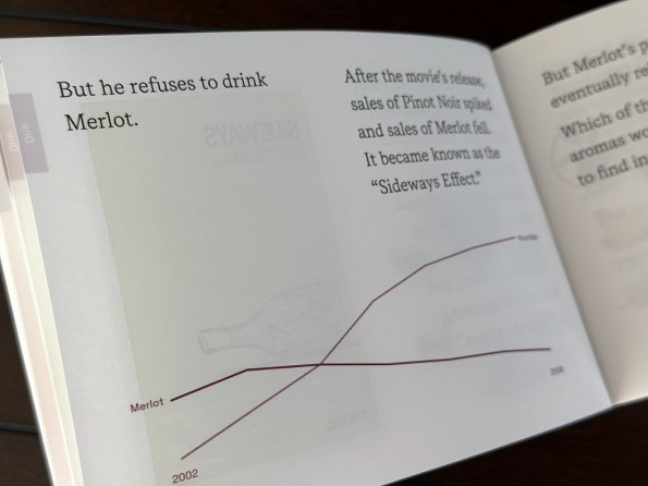 By the end of the first chapter (called Sequence One in the book), you will know how to speak wine fluently. The wine descriptors, such as fruit, acidity, herbs, earth, and spices will leave your tongue without any effort. You will also pick up some fun facts, such as the movie Sideways, for example.