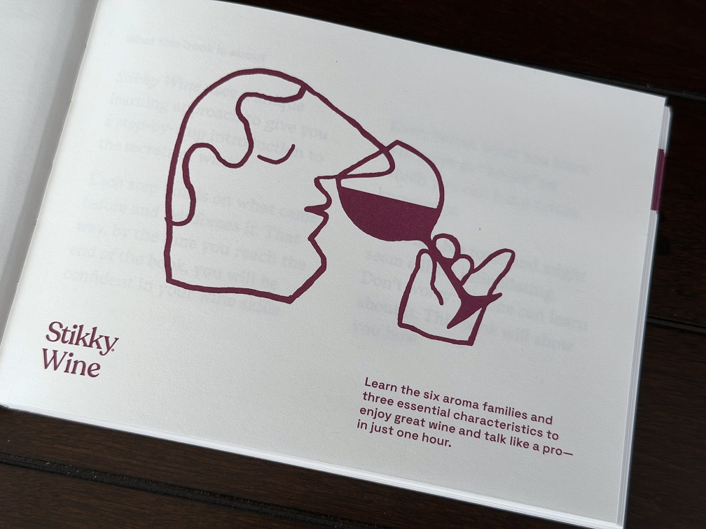 As you open the book, it tells you all you need to know about what follows: “Learn the six aroma families and three essential characteristics to enjoy great wine and talk like a pro – in just one hour”.