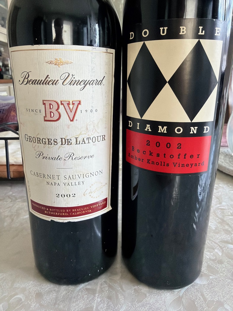 I asked wine friends on Twitter (can’t bring myself to call it X, I still prefer Twitter) which one of the two 2002 bottles you see in the picture above I should open. A few people said “come on, open both and compare!” which I would gladly do if I had a good supply of both. I also got suggestions to open BV, and somehow, this was also my inclination, so BV it was.