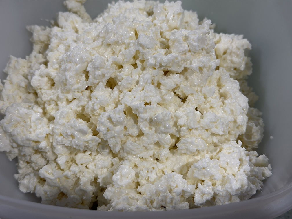 Voila! The cottage cheese is ready to be enjoyed in whatever way you like. By the way, we typically don’t add salt, but of course, you can.