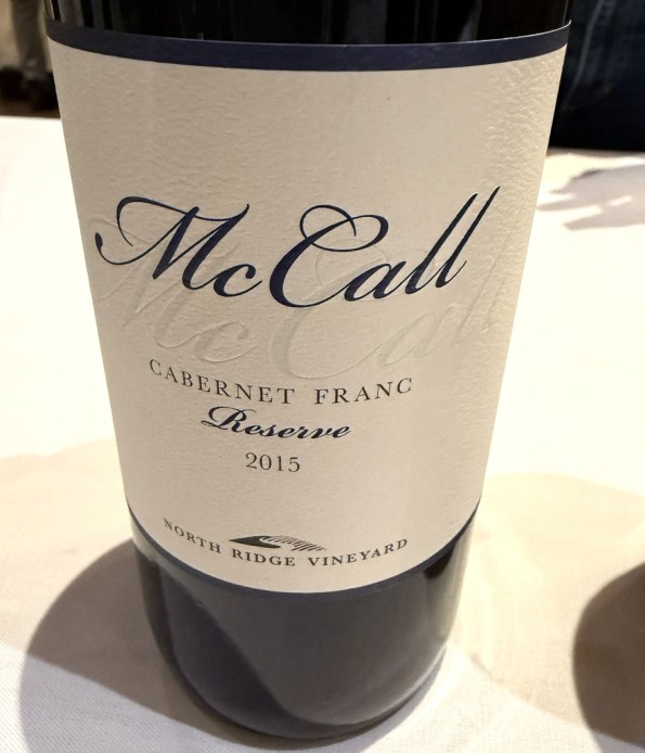 McCall Wines 2015 Cabernet Franc Reserve North Fork of Long Island (13% ABV, $49.00) – ++++, outstanding, elegant