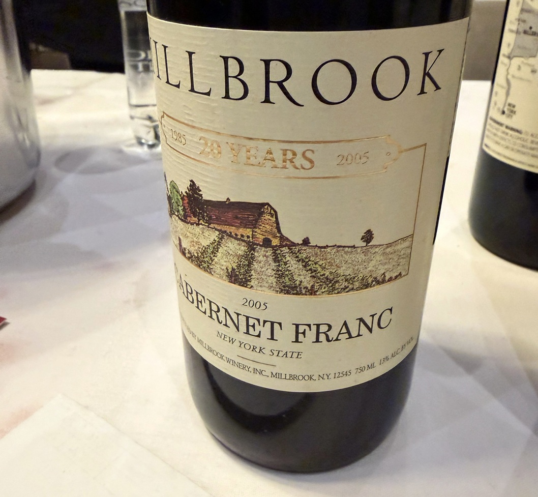Millbrook Vineyards & Winery 2005 Cabernet Franc Hudson River Region (13% ABV, Library, 75% Cabernet Franc, 18% Merlot, 7% Cabernet Sauvignon) – ++++, wow, delicious. Oldest in the tasting. Might be at its peak