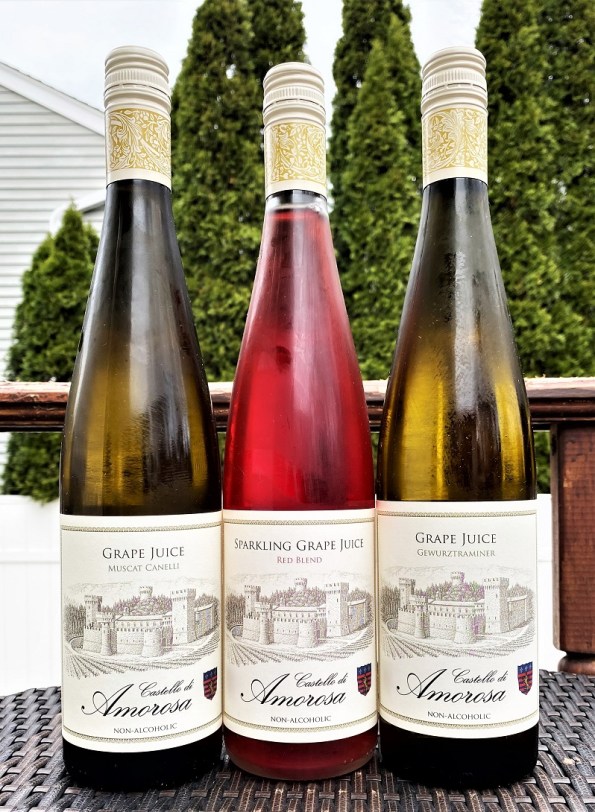 When I got an offer to receive a sample of the Castello di Amorosa varietal grape juices, my first reaction was “seriously???”. Juice is juice no matter what it is produced from, right? It is usually cloyingly sweet and not something I generally enjoy. I had a great experience tasting the juice of just-harvested Merlot grapes at Paumanok winery on Long Island, and I still remember how incredibly sweet it was, so I don’t really see it as a product on its own. But then curiosity prevailed, and I asked for the sample to be shipped.