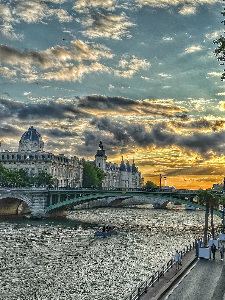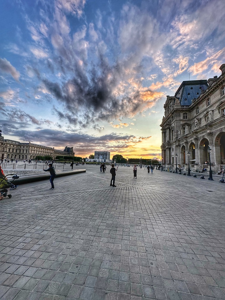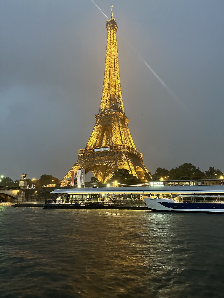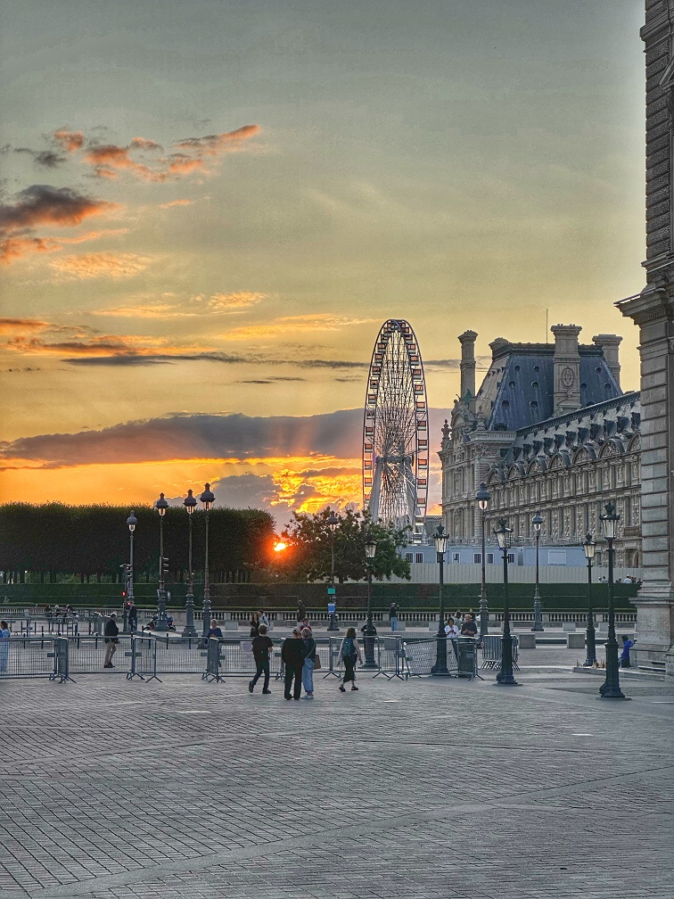 Eiffel Tower (I’m guessing freshly painted for the Olympics but I might be wrong) was, of course, an important destination – we walked around and also took a cruise to see the sunset and the Eiffel Tower brightly lit at night. A short stroll through Champs-Élysées through the scaffolding of some construction for the Olympic Games completed the experience. In the evening, we took a cruise on the Seine – just a cruise without dinner (I had a dinner cruise last year, and it was not worth it in my opinion), and I captured some beautiful sunset moments.