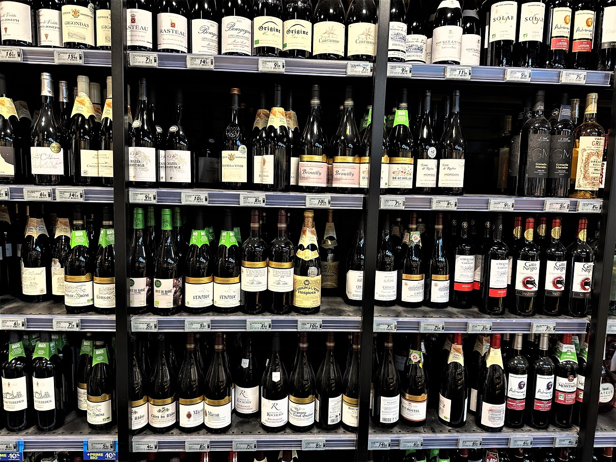 Ah, and here is the obligatory picture of the supermarket wine shelves – you can zoom in and study if you wish.
