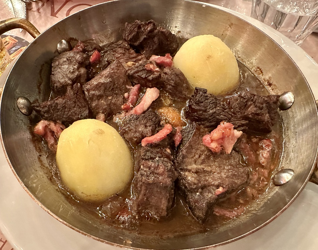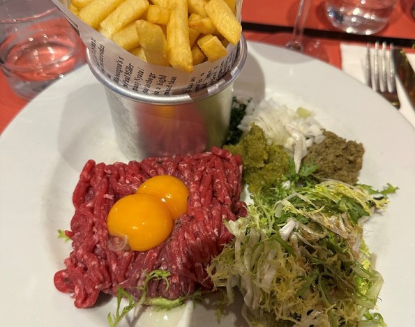 Talking about food experiences, it was my first time trying frog legs! I must say that I liked them. I usually hear a reference to “tastes like chicken,” but to me, they most resembled fish, such as trout, and not chicken. Also in the highlights were Beef Bourgogne (great flavor), oxtail terrine (very tasty), and veal liver with wild mushrooms (perfectly done, not something you can easily find in a restaurant in the U.S.). From the food let-downs, I want to mention steak tartar premixed with … wait for it… ketchup (sigh). You couldn’t taste anything except ketchup in that dish…