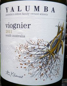 Viognier #2 was 2011 Yalumba Viognier South Australia ($11.99, 13.5% ABV). A touch darker in color than the #1, less bright. Nose of pear, herbs, white peaches and mango, more exuberant than the wine #1, but not to the point of being overwhelming. On the palate, there was more fruit than in the wine #1, but it was predominantly white grapefruit. While the wine was showing round enough, there was not enough acidity. Drinkability: 7.