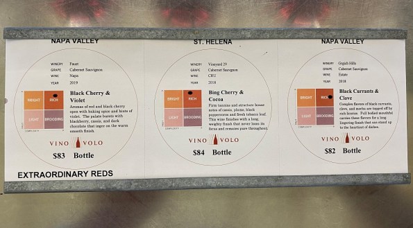 However, my main attraction at Vino Volo is wine tasting flights. At any given moment, Vino Volo offers 6-8 different tasting flights, red, white, Rosé, each flight typically consisting of 3 wines. Each flight is accompanied by detailed tasting notes. Very often you can find a selection of local wines offered as part of the flights – Oregon wines in Portland, Texas wines in Austin, and so on. When I have time, I never pass on an opportunity to visit a Vino Volo store and taste some new wines.