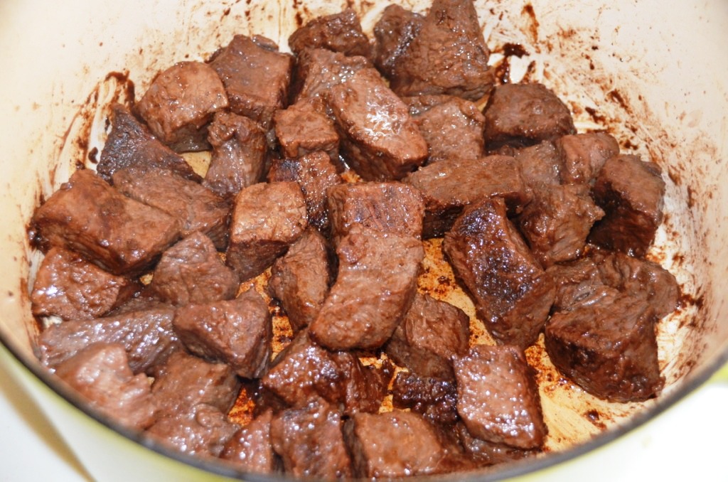 6 lb beef for stew – use stew-cut meat from the good store, or take chuck or roast cuts and cut them into 1″ – 1.5″ cubes)