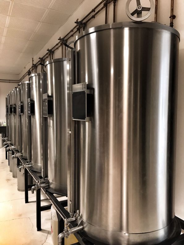 Once different essential oils are acquired (lots of fruits, flowers, etc. can be converted into the essential oils – mango, lavender, vanilla, jasmine, coconut, … the sky is the limit), the “master blenders” will assemble (blend) the desired products. Then the neutral alcohol will be added, and the final blend will be stored in the temperature-controlled tanks (and this is what you saw in the picture – subject of this quiz), where it will stay for at least a few months or longer, undergoing periodic stirring and then the quality control before it will be bottled to ensure that the final blend is a quality product.