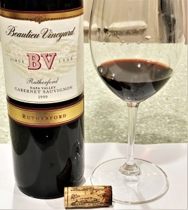 If you read this blog for any extended period of time, I’m sure you already know: I love aged wines. Contrary to what typical wine articles advocate – stating that the absolute majority of the wines should be consumed young and should never be aged – I absolutely believe that a significant number of wines, especially reds, not only can age but also improve with age. The evolution of the wine in the bottle is what we are after. Young wine can be perfect and deliver lots of pleasure to the drinker. Well-aged wine delivers lots and lots more – it is not just pleasure, it is often the whole experience. My latest proof and case in point (wish you were there) – 1999 BV Rutherford Cabernet Sauvignon.
