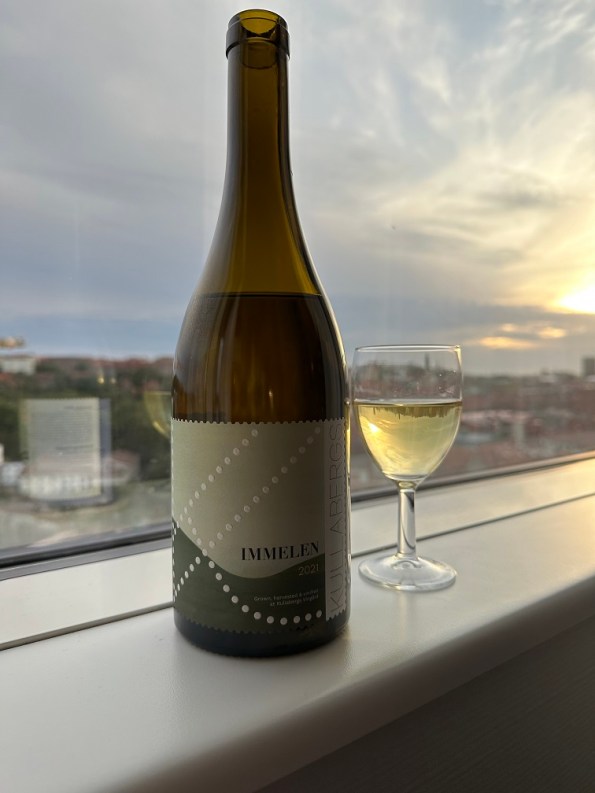 Before we talk about the taste, let’s talk about the wine itself – 2021 Kullabergs Vingård Immelen (13.5% ABV, mostly Solaris grape). The winery is located in the southwest part of Sweden, on the Kullaberg peninsula which is also a nature reserve (sometimes called Cape Kullaberg). The Kullabergs vineyard was planted in 2006. One of the main grapes at the vineyard is called Solaris – the grape selected in Germany in 1975, specifically developed to cope with cold climates. The wine I got from the store was mostly made from Solaris, at least according to the back label, even though the only technical note I found on the website was for Immelen 2019 which had 86% Solaris and 7% each of two other grapes.
