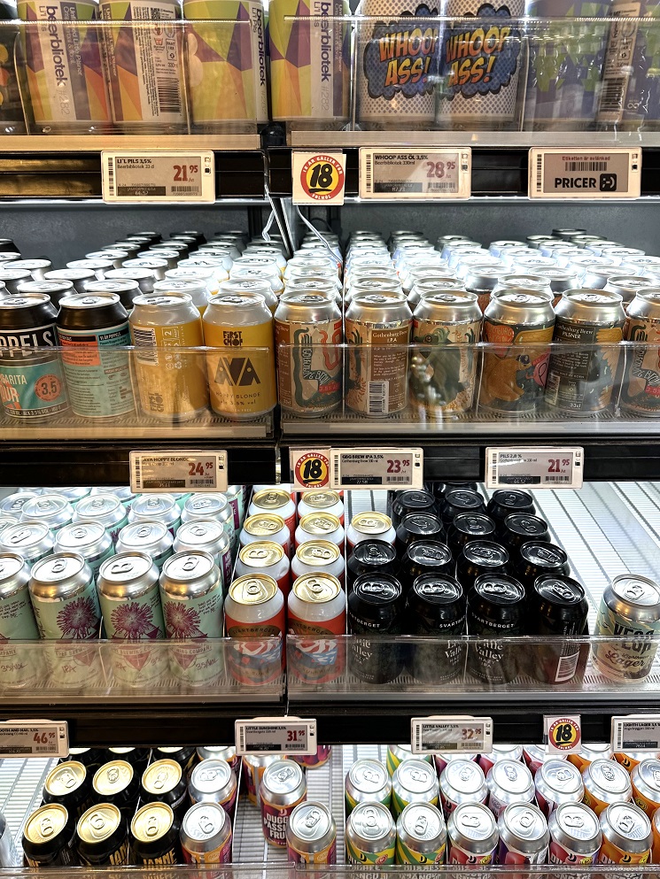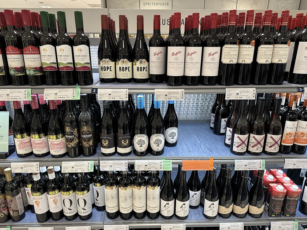 Once I got situated at the hotel, my next trip was a traditional walk to the supermarket. For the absolute majority of trips, this is my standard routine – I generally prefer to drink sparkling water in the room, and this is the easiest way to get it (not even the question of least expensive – in many cases, hotels simply can’t supply bottled sparkling water). I’m also always eager to see the wine shelves at the supermarket, to see what is there and at what price. In Sweden, however, it is a bit tricky – alcohol sales are a government monopoly – Systembolaget is the chain of stores that can sell alcohol and liquor in Sweden, and of course, they control the prices and the selection.