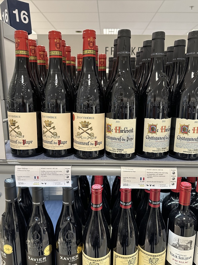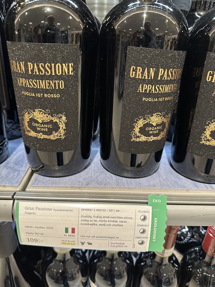 As a general observation, I saw a good number of wines at a reasonable price, around $10 or less (divide the price you see in Swedish krona by 10 or 11 – that will give you the price in dollars).