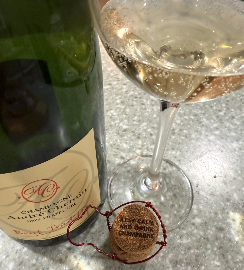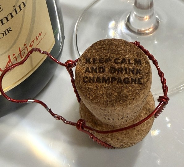 Two days ago, I opened a bottle of one of my favorite Champagnes, NV André Chemin Brut Tradition Champagne, and to my surprise, noticed something I had not paid attention to before. Take a look at this cork:
