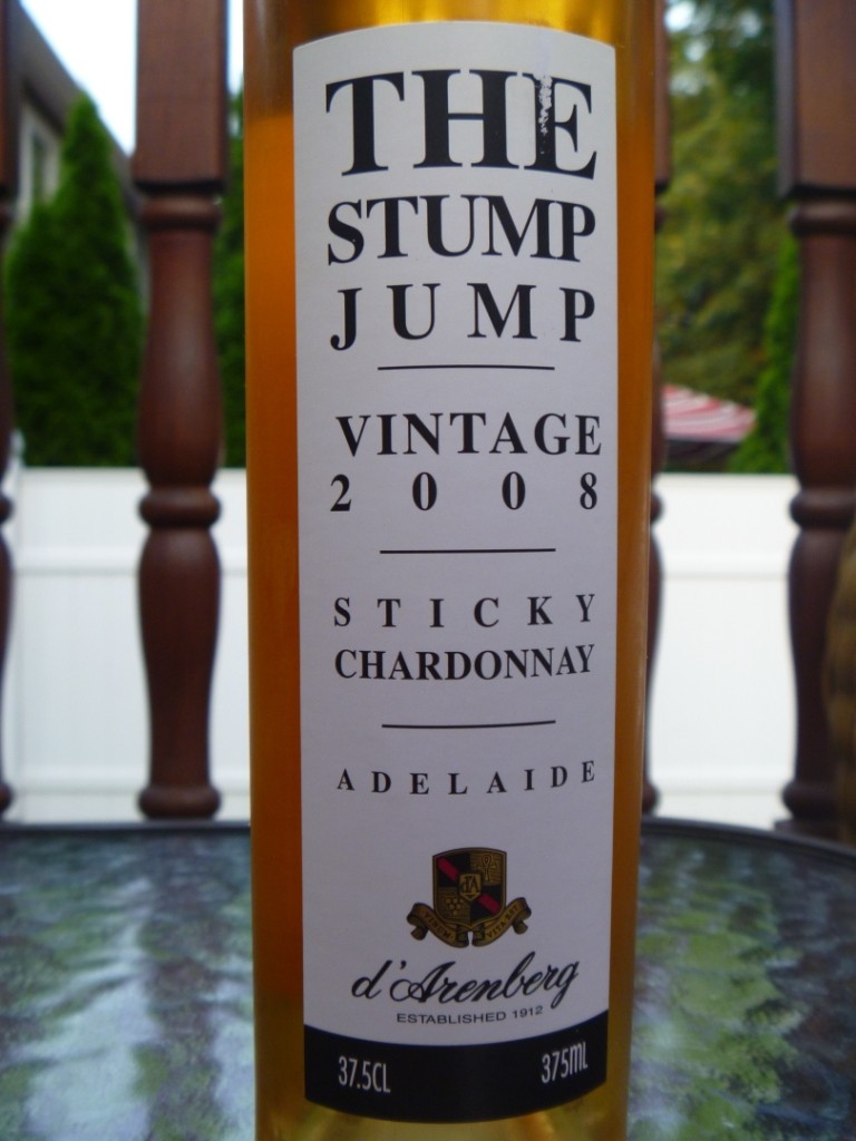 So for this post, let’s compare 2008 d’Arenberg Stump Jump Sticky Chardonnay from Australia (about $10 for 375 ml bottle) with 2006 Dr. Loosen Riesling BA ($20 for 187 ml bottle, so it is 4 times more expensive).