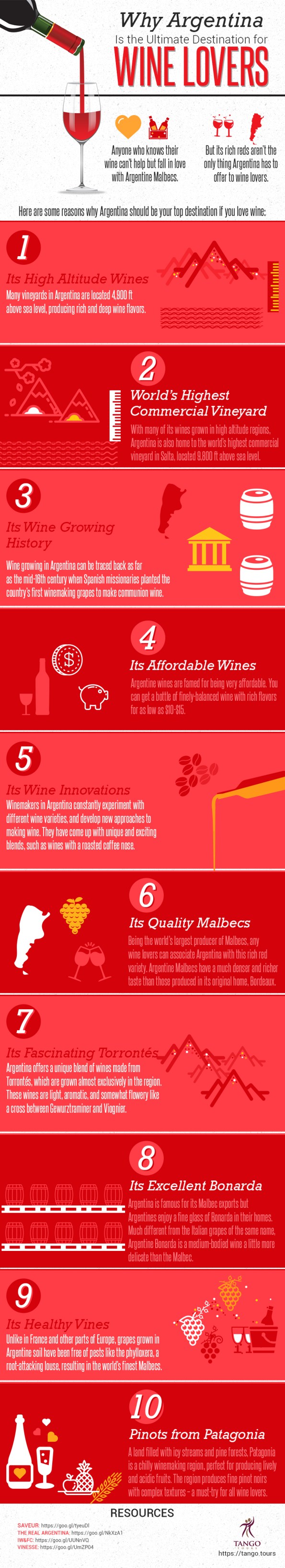 Wine and Travel – aren’t those the best together? Visit new places, try new wines, then more new places and more new wines. I’m sure this is simply a music to the ears of many. Today I want to offer to your attention a guest post by Mark Davis, Managing Partner at Tango Tours – A Luxury Travel Company (www.tango.tours) – the company which can help you realise that dream of having a great time and great wine while travelling the world. And as we are still in the Malbec Month of April, below you will find the Argentinian wine Infographics, courtesy of Tango Tours. Cheers!