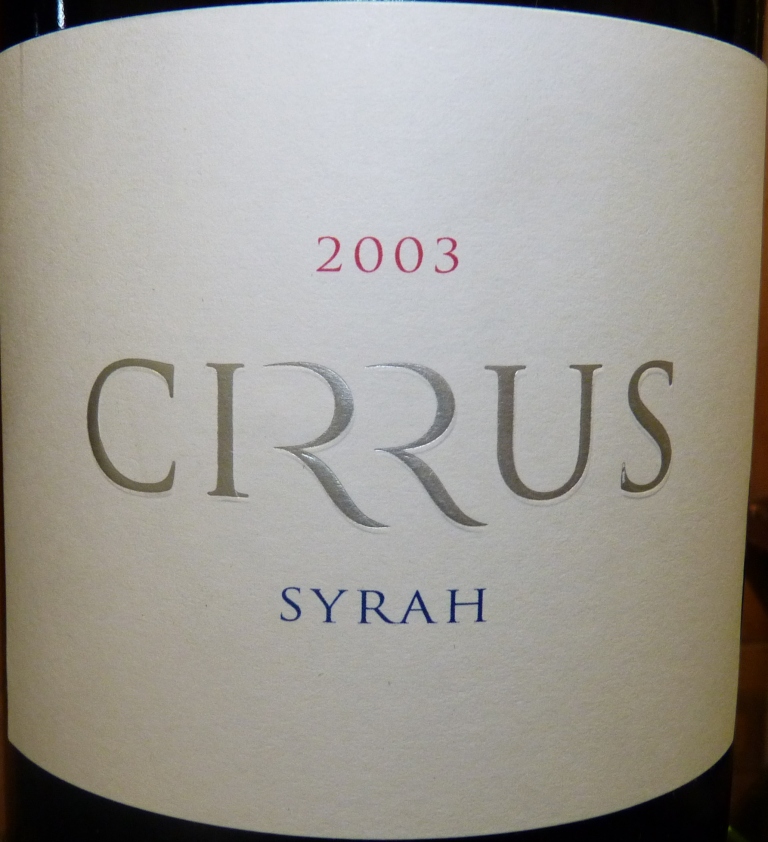 Last I would like to mention 2003 Cirrus wine – a predominantly Shiraz ( 96%) with addition of small amount of Viognier (4%). On the palate, this wine mostly represents liquid smoke, but it really comes alive in a glass, with excellent tannins, toned down fruit and perfect acidity, well balanced.