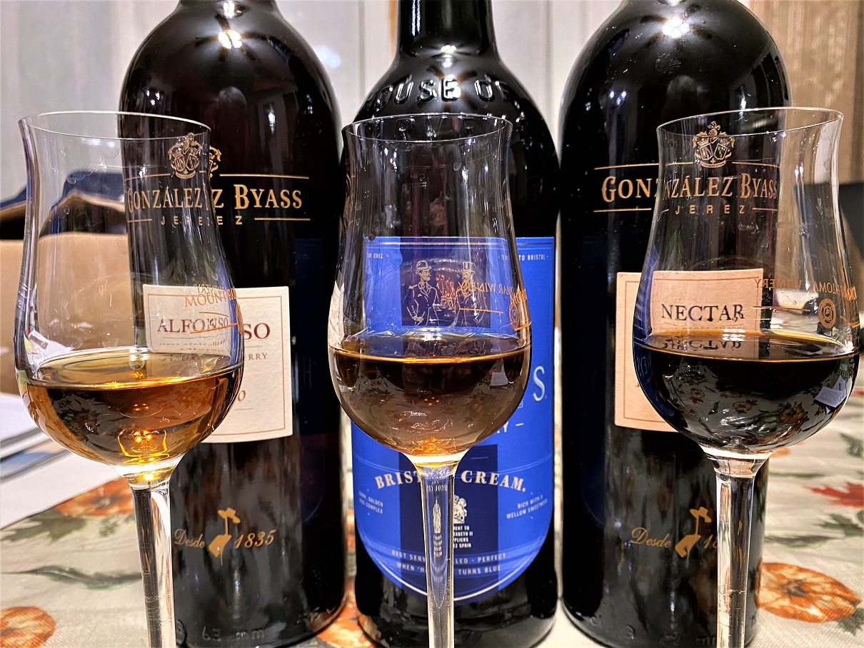 On the next picture, you can compare the intensity of color between Pedro Ximenez (much darker) and Cream Sherry wines: