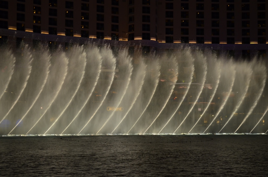 And then – music and the “wow” exhorted by many people at once – as Bellagio fountains came to life. These pictures will not do the justice to the art of water, light and music, but at least you will get an idea: