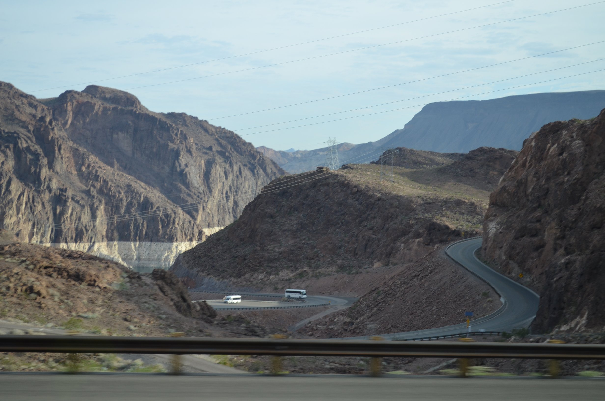 After we learned about the life in Las Vegas, we moved to the next subject – Hoover Dam, as we were getting close to it. No, we didn’t stop there, as we were driving on the new highway, which was not allowing any stops for sightseeing – but it was also making the trip shorter by about 2 hours, so all in all it was a positive thing. Here are some of my attempts to take a picture of the Dam through the window of the moving bus (yeah, fat luck):