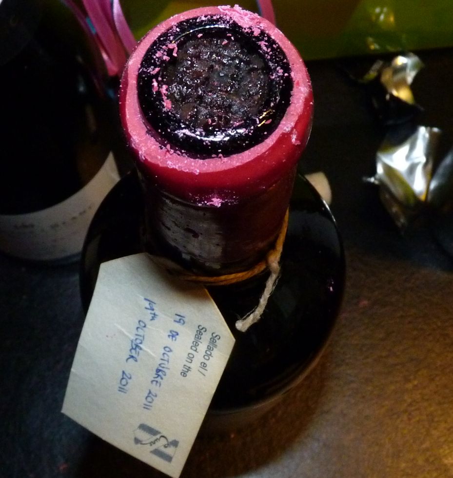 Needless to say we started with 1947 Rioja. Considering the tender age of 65 years, the first challenge of course was to get the cork out. I wish we had one of those glass-cutting devices described in the PJ Wine blog post, which simply allows you to cut the whole neck of the bottle with the cork in it, and not worry about the cork crumbling into your wine – well, we don’t drink wines of that age often enough, so we had to stick with more conventional tools, like the two-prong cork puller.
