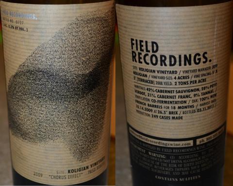This 2009 Field Recordings Chorus Effect Koligian Vineyard, Paso Robles ($26, 15.3% ABV, 249 cases made) is a Bordeaux-style blend – you can see the exact composition on the picture of the back label.