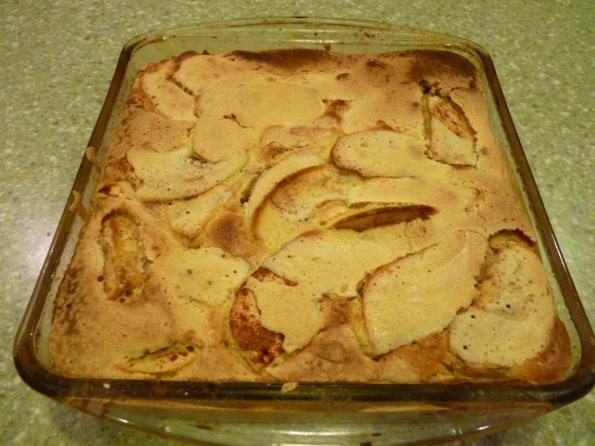 Bake it first for 15 minutes at 425F, then reduce the heat to 375F and continue for another 45 minutes or until the top is brown enough (you can check readiness with a wooden toothpick). DO NOT OPEN the oven until the end – you have to let the cake rise. At the end of the process, you end up with this: