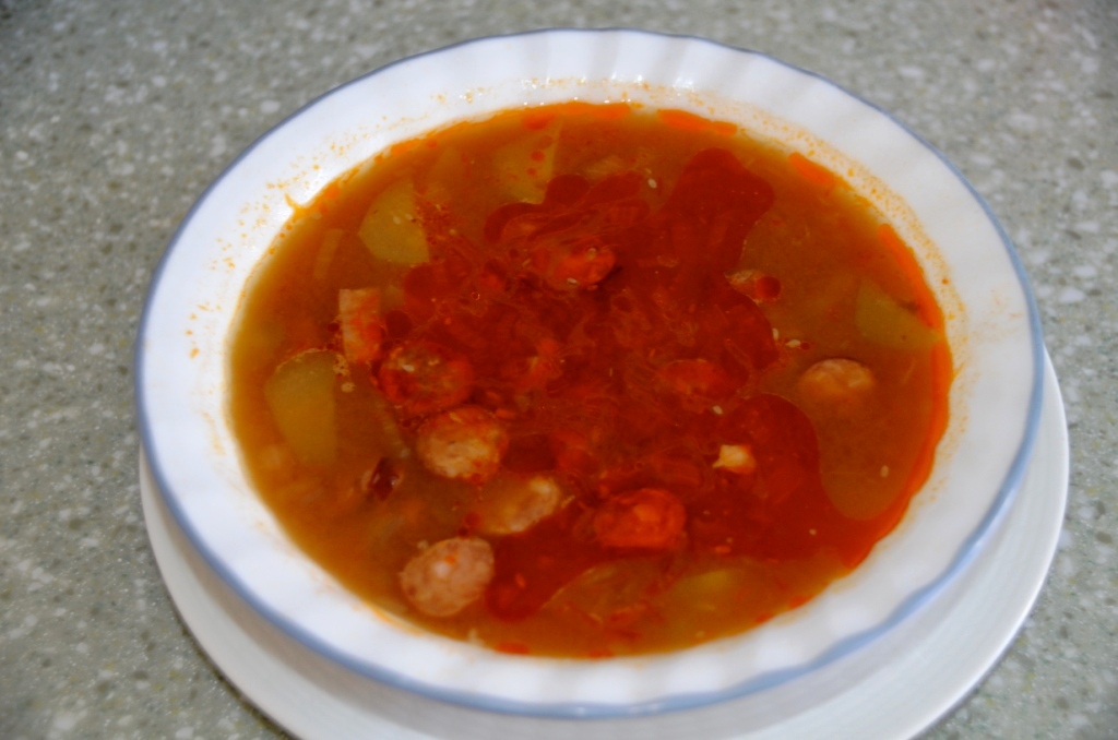 As you could deduce from the title of this post, the main ingredient in Solyanka is … meat! Actually, any kind of meat is going – pork, beef, veal, chicken – whatever you got. It is important to note that we are not talking about raw meat – we are talking about meat products, such as smoked or cured sausages, baked chicken/turkey breast, ham, all sorts of bacon, bologna, hot dogs, any meat leftovers – anything which goes in the category of “cold cuts”.