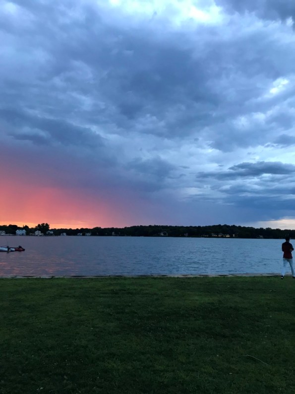 And then there was the sunset. I love taking pictures of the sunset, one of my most favorite types of photography. I often can take a decent picture of sunset right from my backyard – not all of those worth sharing though. But this Sunday sunset happened to be really special. A little rain started all of a sudden in the evening, forcing me to seek cover under the umbrella on the deck. The rain was very short, maybe 5 minutes or less. Once the rain didn’t look bothersome anymore, I stepped out from under the umbrella to go sit in the chair in the backyard – and then I saw THIS: