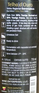 I also want to mention that I really love back labels on the Portuguese wines. A lot of wines sold in us have a government warning on the back label, plus sometimes a note explaining how much love went into that particular bottle of wine. Sometimes you can find useful information, but this rather an exception than a norm. When it comes to Portuguese wines, they practically always have a great back label which provides a lot of useful and interesting information, such as grape composition, type of soil, how the wine was fermented, suggested serving temperature and so on ( you can see for yourself). Don’t know about you, but this is type of information I’m typically interested in.