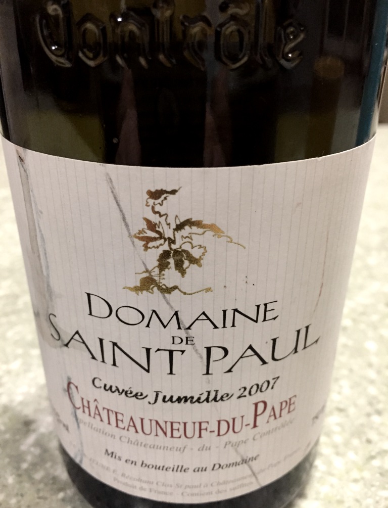 What prompted this post was the wine I had yesterday – 2007 Domaine de Saint Paul Cuvée Jumille Chateauneuf-du-Pape (95% Grenache, 5% Muscardin), which was absolutely delicious, and perfectly balanced, with round, smokey, chocolatey profile. The wine also had a touch of an interesting sweetness on the finish, which prompted me to look carefully at the label – and then my eyes stopped at 15% ABV, with the first thought was “this is amazing – I don’t find even a hint of the alcohol”. Judging by this ABV number alone, the “alcohol burn” would be well expected.